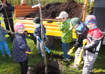 Děti z mateřinek sázely ovocné stromy